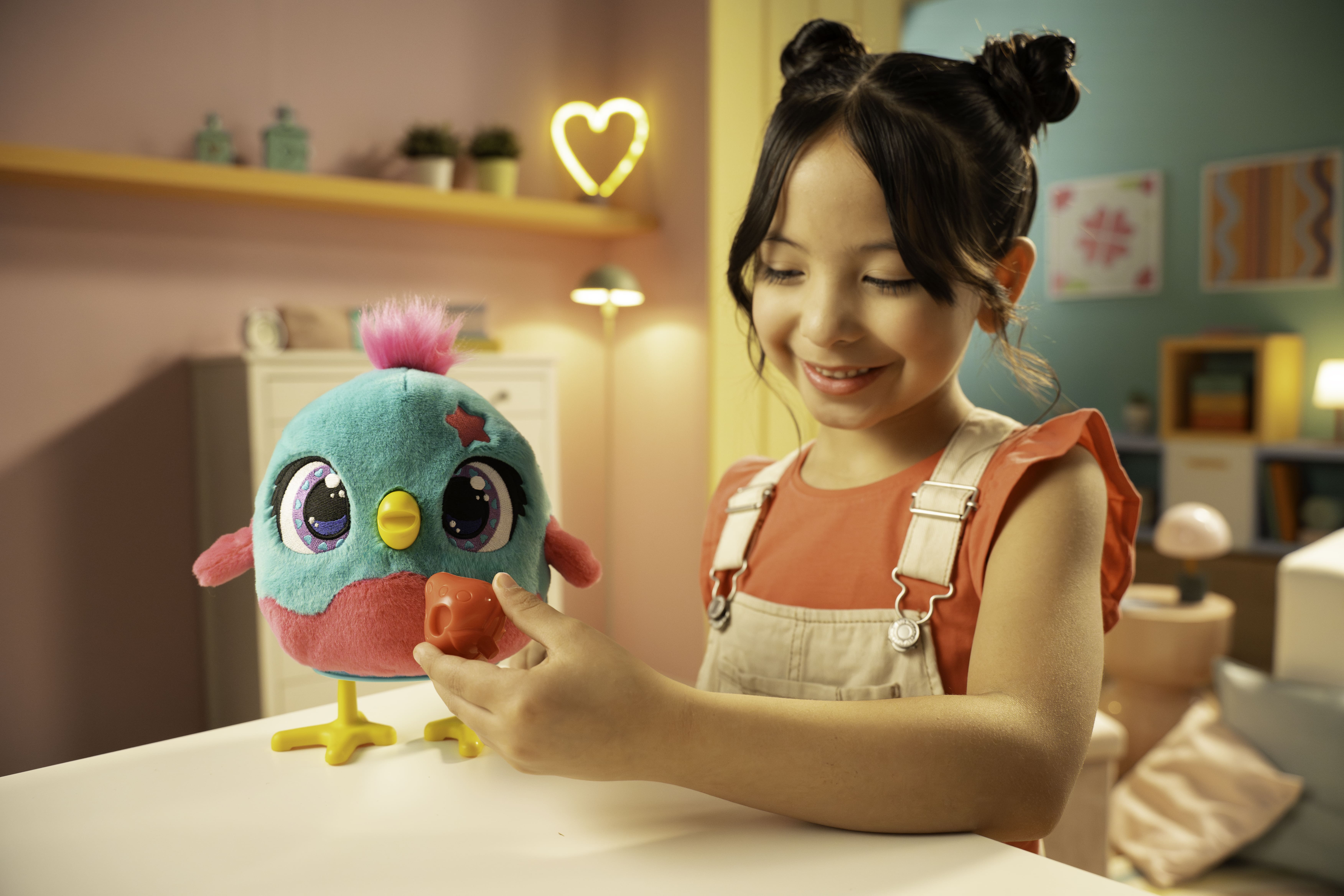 Chick-a-Boo is a brand new toy bursting with personality, and packed with 50+ sounds and reactions, including songs, giggles, wiggles, dances, and of course, her soon-to-be legendary ‘lays 2eggs’ moment! Simply, feed her a strawberry (her favourite snack) and watch the magic unfold. She’ll sing, dance, and lay an egg right before your eyes! Inside each egg hides a cute surprise chick, ready to be loved and looked after.